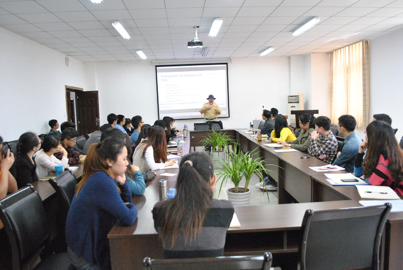师生带来题为《Health informatics and Complementary medicine for the health care crisis》学术报告。会议由学院副院长杨德刚教授主持。