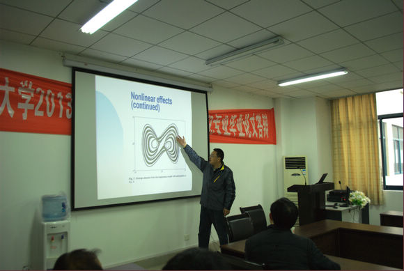 研究生读博进行了的鼓励和发出了邀请;然后利用混沌研究的方法,从数学建模的思想出发,结合实例详细阐述了情感的影响因素,建立了情感演化的混沌模型并进行了模型的动态展示;最后对与会者的提问进行了耐心的回答。其深厚渊博的知识储备,幽默风趣的演讲技巧和精彩前沿的报告内容,无一不让人心旷神怡,如沐春风,赢得了与会者阵阵热烈的掌声。