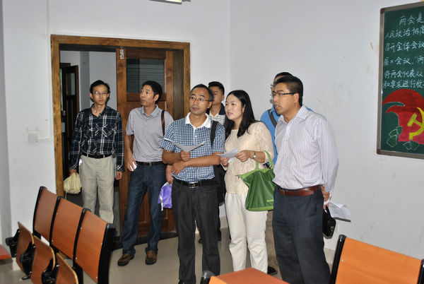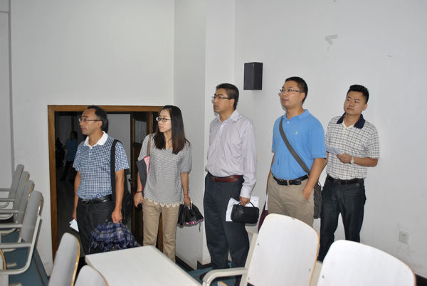 在检查途中,学院领导遇见了检查开学情况的校领导,
