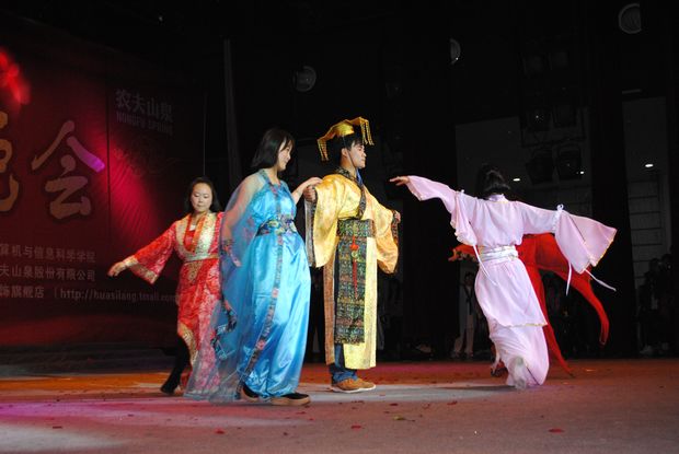 看,场上男男女女用那轻盈而娴熟的节奏,动感而激情的舞姿正在演绎着恰恰《Hole in my heart》,紧随其后的歌曲串烧《如果爱》和教师节目《格桑花》将晚会气氛推到高潮。扣人心弦的魔术《预言》,充满异域风情的《新疆舞》和古典舞《梦醉潇湘》,耐人深省的情景剧《丁香花》、《历史的天空》无一不感染在场的每一位观众,牵动着每一颗观众的心。嘻哈街舞串烧《舞客联盟》,霸气逼人rap《平民百万歌星》,优雅清新乐器合奏曲《burning》展示了年轻一代青春的曼妙多彩和无限热情,第四届团总支学生会的一场《时空之秀》更是呈现了集体创作的精美,形式新颖、妙趣横生、令人称绝。更有趣的是融合了小品和《江南style》的《计信好声音》令广大师生捧腹大笑,台下掌声阵阵,欢呼声一浪高过一浪。值得一提的是,晚会还特别设置了与观众游戏互动和微博互动的环节,同学们积极参与,充分体现了浪live