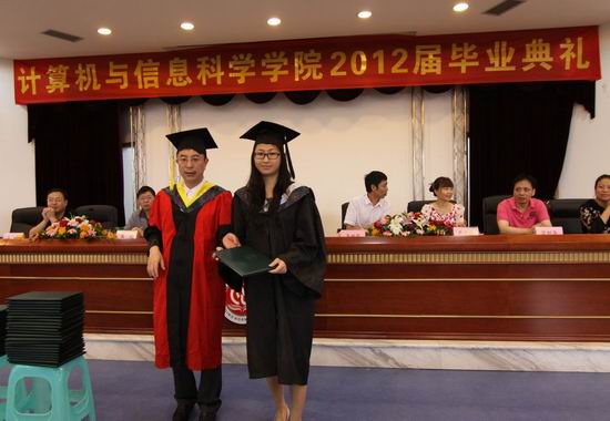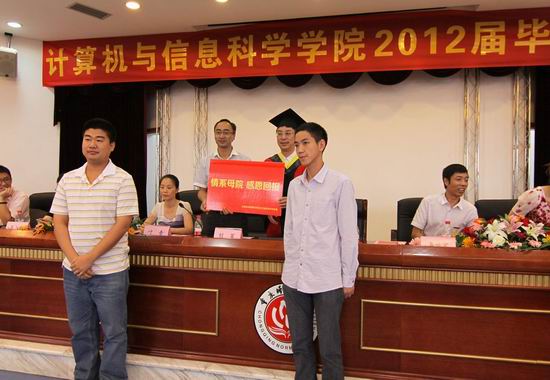 首先,杨宇老师介绍嘉宾并宣布毕业典礼开始。在观看专题片《2012届毕业汇报》时,同学们激动不已。紧接着,魏延副院长宣读浪live 本科授位决议,校学位委员会成员、学院学位分委会主席马燕院长为2012届106名工学和110名管理学毕业生授予学士学位,颁发学位证书并合影留念。