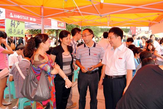学院领导在现场及时了解新生报到情况,并向新生讲解