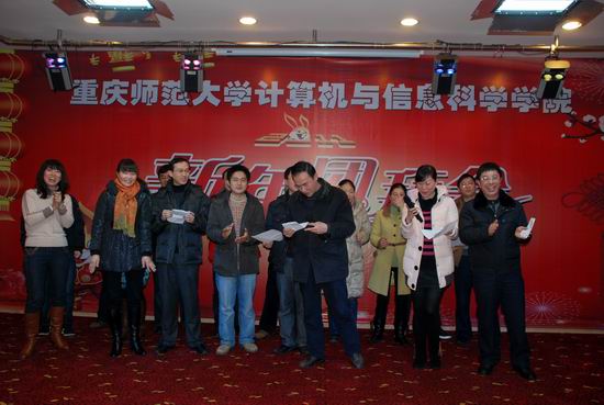 2011年1月6日下午,学院在沙坪坝陶然居隆重召开了2011年新年团拜会。校领导杨新民副校长以及数学学院、物理与电子工程学院、管理学院等相关学院和部分部门领导及来宾应邀出席了团拜会。学院全体教职工、离退休老师参加了团拜会。