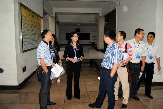 在教学楼下,学院领导向检查开学情况的学校领导龚燕副书记