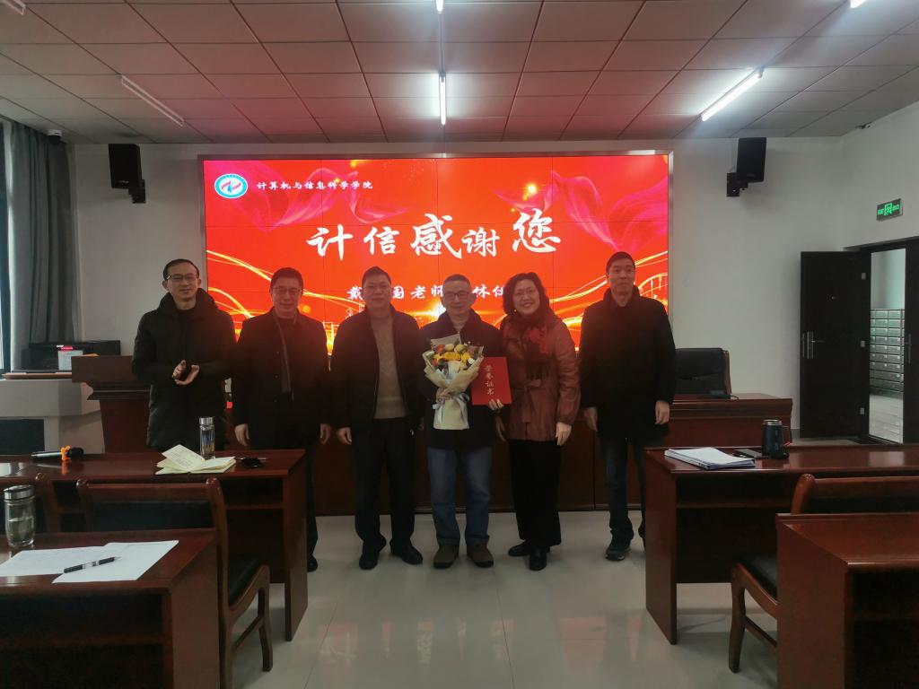 2021年1月19日上午,计信学院戴政国教师荣休仪式在学院319会议室举行。学院全体教职员参加,学院党委书记陈兰主持仪式。
