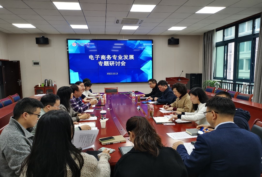 于2022年10月13日,在致用楼302会议室举行了电子商务专业发展专题工作会。出席会议的有学院领导班子、电子商务专业全体专任教师、辅导员、教科办工作人员等。会议由学院副院长冉瑞生主持。