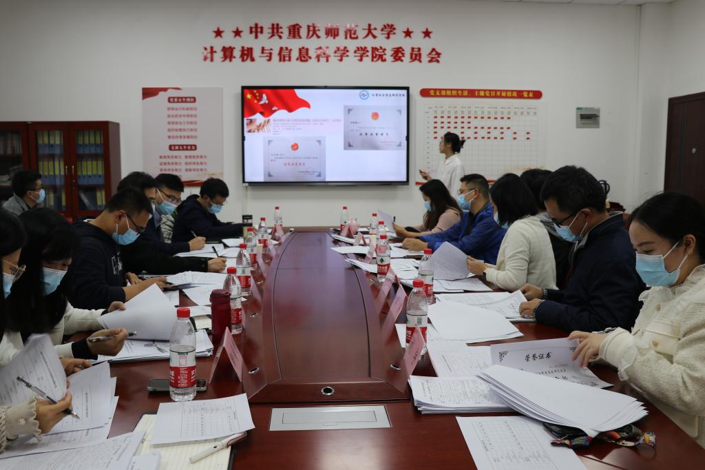 在致用楼314举行本科生国家奖学金答辩会。本次会议采用线上、线下相结合的方式进行。计算机与信息科学党委副书记李若岩,副院长崔少国、冉瑞生以及学工队伍参与评审。