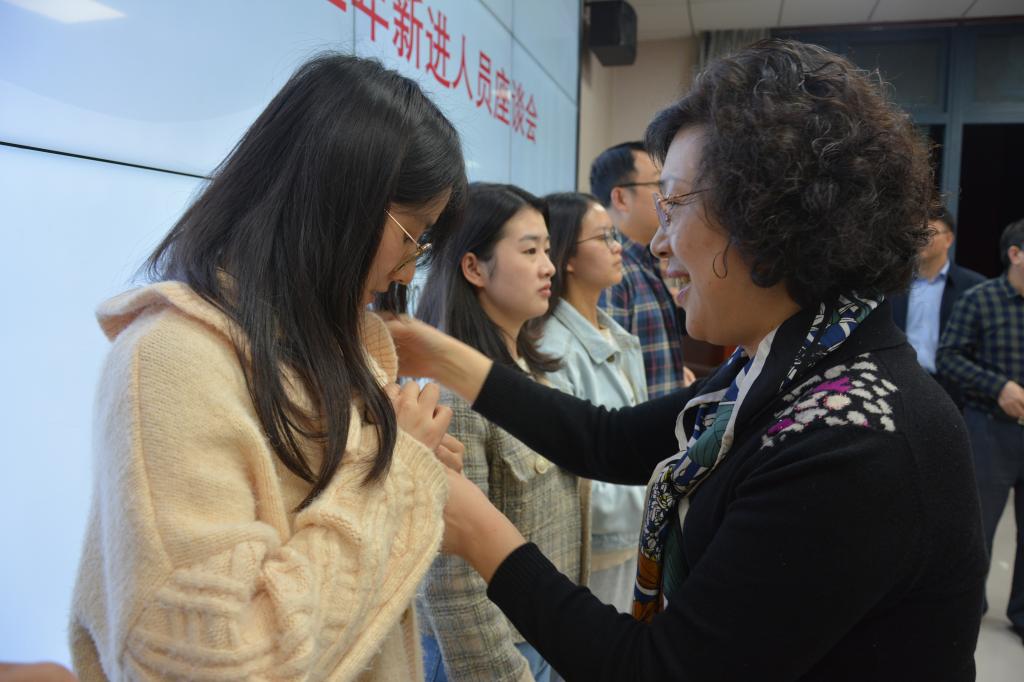 陈书记随后做总结发言,对新人提出三点要求,一是不忘初心选择,忠于教师职业、热爱教师职业、坚定教师职业。二是主动融入,共建和谐,积极了解校院办学历史、办学特色,尽快适应学校学院工作,成为重师计信人;三是牢记使命担当,教书育人,做好教师本职,以德立身、以德立教、潜心教学,成好学生的“四个引路人”,在重师在计信创造出灿烂的人生辉煌。最后,学院领导为各位新人佩戴浪live