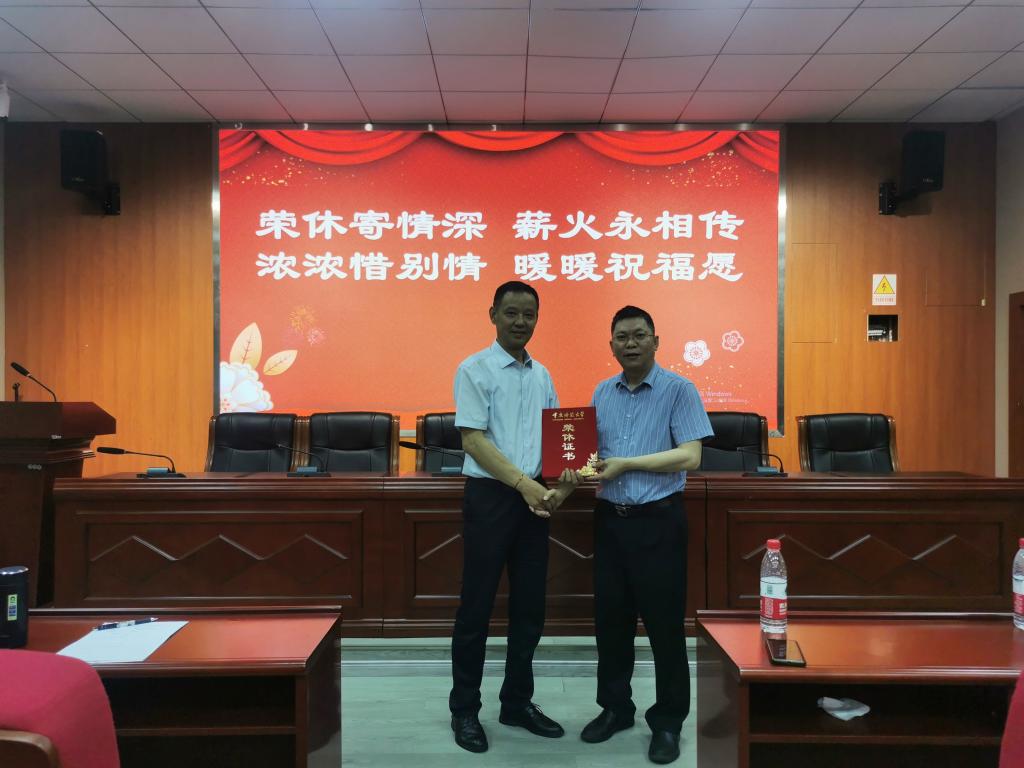 罗世祥老师荣休仪式在致用楼102报告厅举行。学校党委组织部副部长任源钢出席仪式。仪式由学院党委书记陈兰主持,全院教师参加。