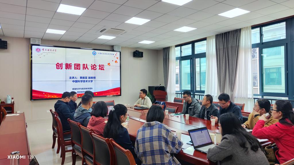 在致用楼302会议厅举办“创新科研团队论坛”,本次活动邀请到中国科学技术大学黄振亚副教授,学院院长魏延、院长助理罗凌等相关老师参加,软件工程系主任冯骥主持。