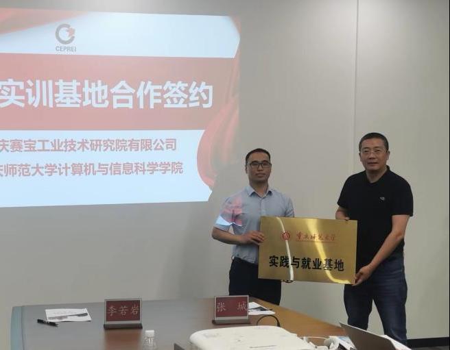 李若岩代表学院授牌“实践与就业基地”,并对赛宝的热情接待表示感谢,期待双方继续增进了解、加强合作,共同推动人才培养模式创新,为学生开拓更丰富的实践机会和就业资源。