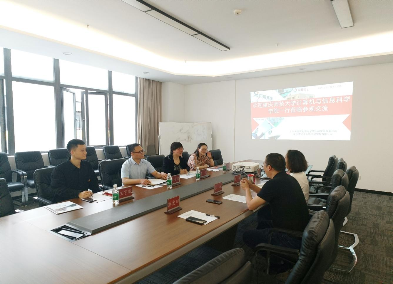 参观结束后,双方围绕共建项目、校企合作和人才培养等方面举行座谈交流会,赛宝公司市场部主任张城、执行主任张希、主任助理唐菊、项目经理熊爱琼参加会议。张城对重师计信学院的到来表示热烈欢迎,并介绍了公司和研究所的现状和人才需求。李若岩介绍了计信学院的基本情况,并从科创联合申报、就业创业项目合作和实习实训共建三个方面,提出了校企合作具体落实的方案构想。