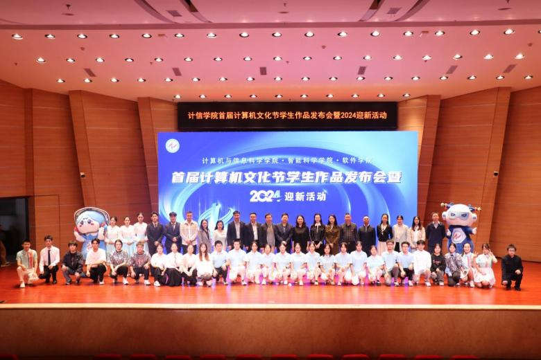 在校友会堂举行首届计算机文化节学生作品发布会及2024级迎新活动。出席本次活动的嘉宾有创新创业学院院长刘睿、校团委书记张珍瑜、研工部副部长张立、科研处副处长万辉、教务处副处长梁静以及计信学院党委书记王军、院长魏延、副院长崔少国、副书记李若岩。此外,学院党政办、教科办、学工办主任,各系主任,全体辅导员以及本科生和研究生代表也参加了此次盛会。