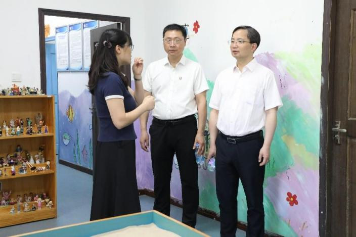 在报告会开始前,在王国胤校长、贾韬副校长的陪同下,周志华副校长参观了特殊儿童脑认知交叉研究中心和校史馆,对学校的办学特色及文化底蕴给与高度评价。