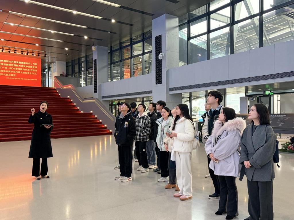 参观过程中,同学们专注聆听、积极互动,不时驻足细看、交流感悟。大家纷纷表示,此次实践不仅是一次城市发展认知之旅,更是一堂生动的实践教育课。“坚韧、忠勇、开放、争先”的重庆城市精神,在一幅幅历史画卷、一个个建设场景中变得可感可知、可亲可敬,极大增强了作为在渝求学青年的归属感、自豪感与时代使命感。