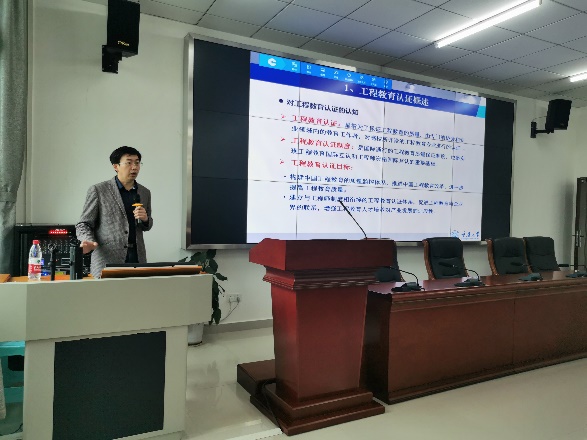 会上,蔡院长从工程教育专业认证概述、认证标准、自评报告撰写以及认证的实践几个方面,为参会人员进行了系统和全面的培训,对学院后期开展工程教育专业认证具有很强的指导意义和实用价值。会后,蔡院长还和参会老师进行了热烈的互动交流。