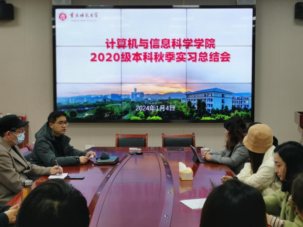 302会议室,召开了2020级本科秋季实习总结大会。学院教学副院长冉瑞生、计算机科学与技术系主任牛彦敏、电子商务系主任陈代江、教科办主任周杨、教师代表、辅导员代表、学生代表参加会议。会议由教学副院长冉瑞生主持。