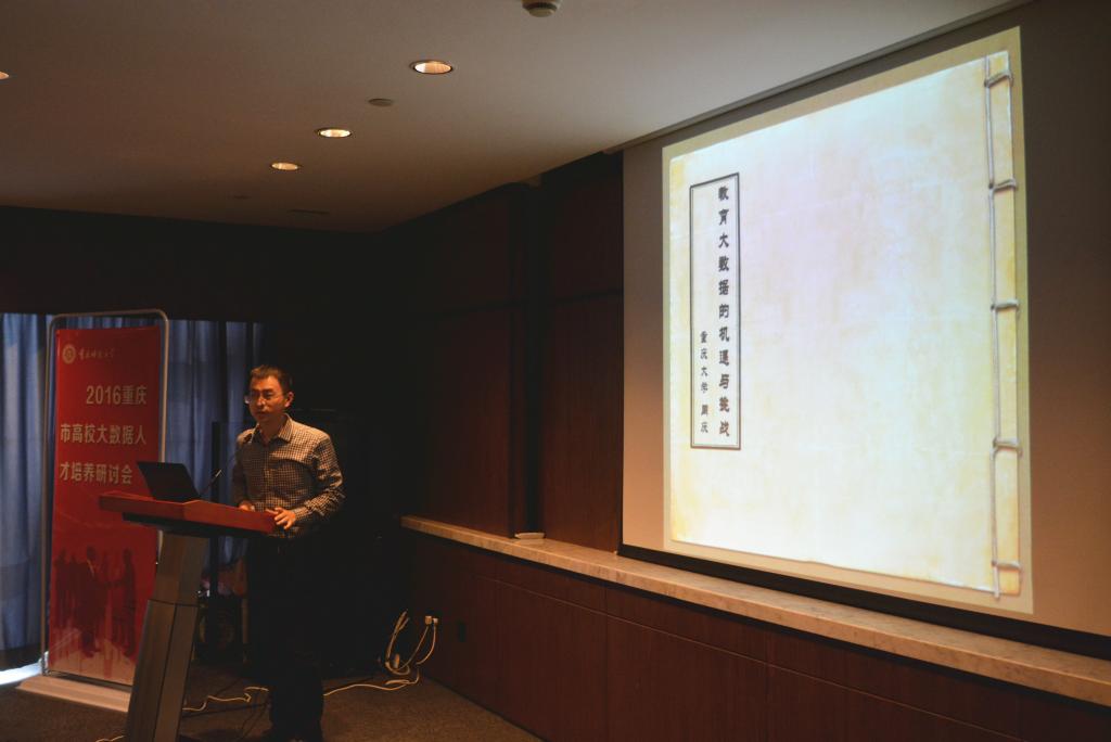 计信学院院长魏延教授发言表示在当今大数据时代的背景下,计算机科学与信息学院更应在专业和技术上顺应时代潮流趋势,完善人才培养方案,丰富人才培养模式,培养出更多大数据人才。重庆大学计算机学院周庆教授做了“大数据与《论语》”的专题发言,周教授以《论语》与教育数据挖掘为例,详细分析了如何将数据挖掘技术应用到教育教学实践中,为教育者和数据挖掘研究者提供了新的思路和方向。重庆工程职业技术学院刘鹏教授也发言指出,在当下高速发展的社会,我们要以“反常规的方式”来培养未来的人才,这是机遇更是对高校人才培养的挑战。会议最后,广州飞瑞电子科技股份有限公司黄斌副总裁等企业代表也从当前电子科技企业的角度对大数据人才需求进行了详细阐述。