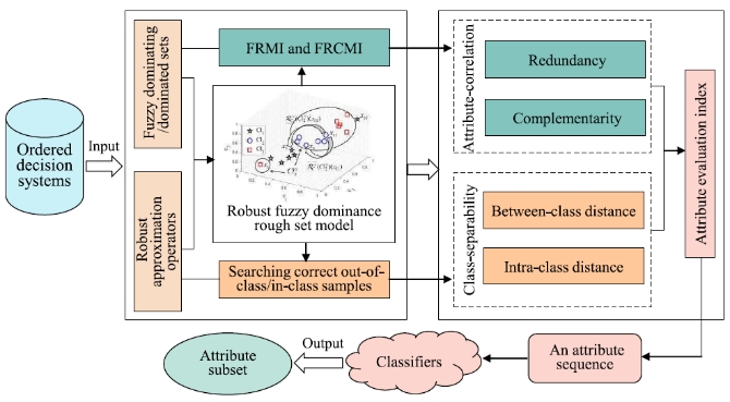 鲁棒知识获取方法是数据挖掘领域的研究热点之一。模糊优势粗糙集(FDRS)模型是有序分类任务的重要知识获取工具。但实践证明,该模型的容错性较差,仅一个噪声样本就会对知识获取造成巨大干扰。属性约简是FDRS的重要应用之一。目前,大多数有序分类任务的属性约简方法主要关注决策对属性的依赖性,而忽略了类的可分性和属性之间的相关性为有序分类提供的信息。针对这两个问题,本文首先提出了一种具有可过滤噪声样本的鲁棒FDRS模型。然后,在鲁棒模糊优势粗糙近似空间中探讨了类可分性和属性相关性,并设计了相应的属性评价指标。最后,设计鲁棒的属性约简算法,选择分类性能最高的属性子集。实验结果表明,该算法具有较好的鲁棒性和分类性能。