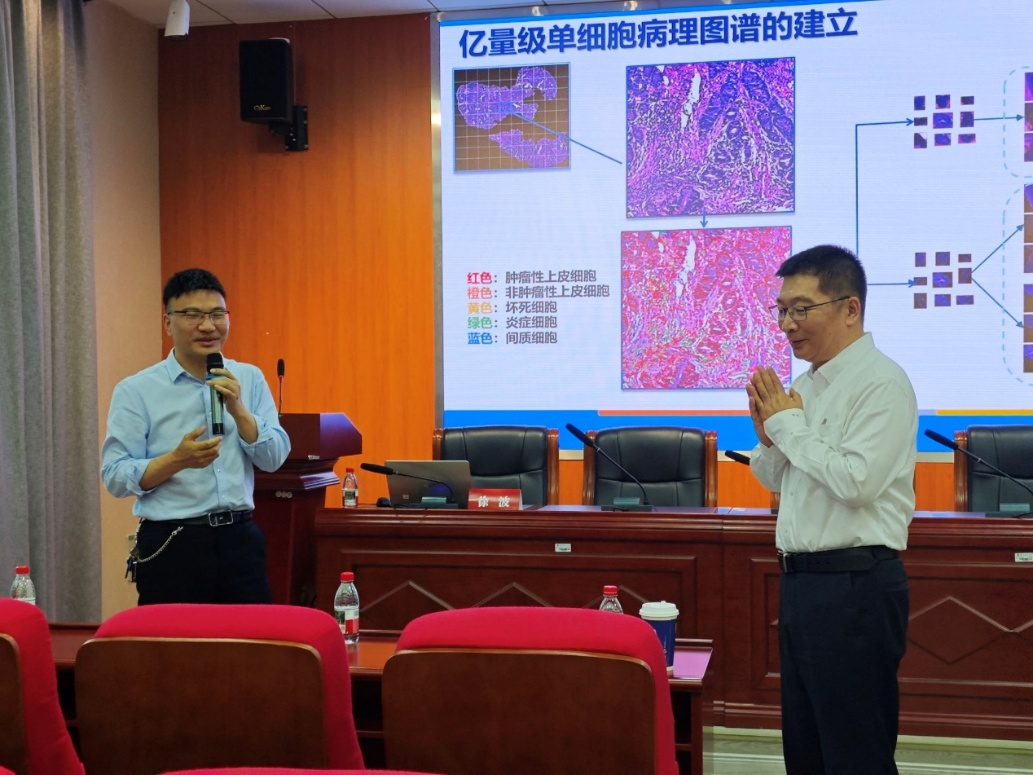 在致用楼102学术会议厅举办第十一期“图灵学术大讲堂”,重庆大学附属肿瘤医院院长教授徐波应邀作题为《大模型时代的智能肿瘤学》的学术报告。学院领导、全体教师、研究生参加,会议由副院长崔少国主持。