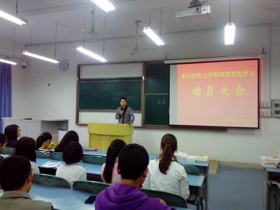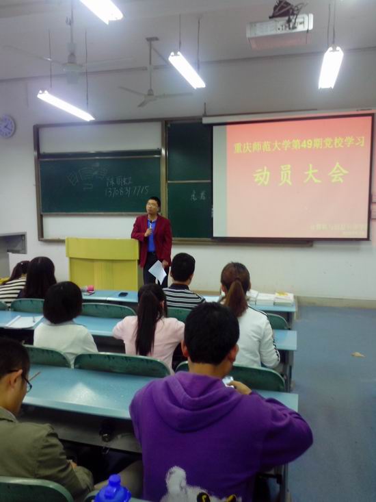 第49期党校学习动员大会”。参会的有党总支副书记杨宇,学生党支部书记张敬,全体辅导员及116名本科和研究生学员。