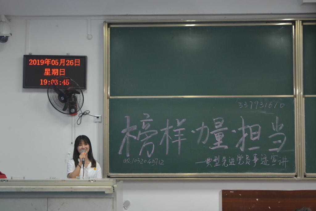 分党委的统一安排下,学生一支部于2019年5月26日18:30时在弘德楼开展了以“榜样-力量-担当典型先进事迹党员宣讲”为主题的党日活动。参加此次宣讲会的有浪live