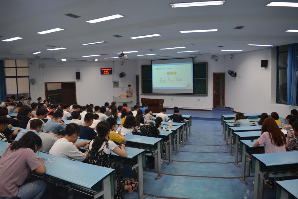 宣讲开始时,主持人桂欣蕾、刘叙敏、张智勇、何小琴首先做了本次宣讲主题的引入、环节和六位宣讲人基本情况的介绍。本次宣讲主要设有宣讲、答疑两个环节,六位宣讲人通过结合自身的经历,分别对有关考研和就业两个方面的问题进行宣讲和答疑。详细阐述了他们各自从大学伊始迷茫到最后找到自己的目标,通过不断调整心态,到最后走向成功从而总结出自己的心得,并给出了自己对待某些问题的方法和建议。