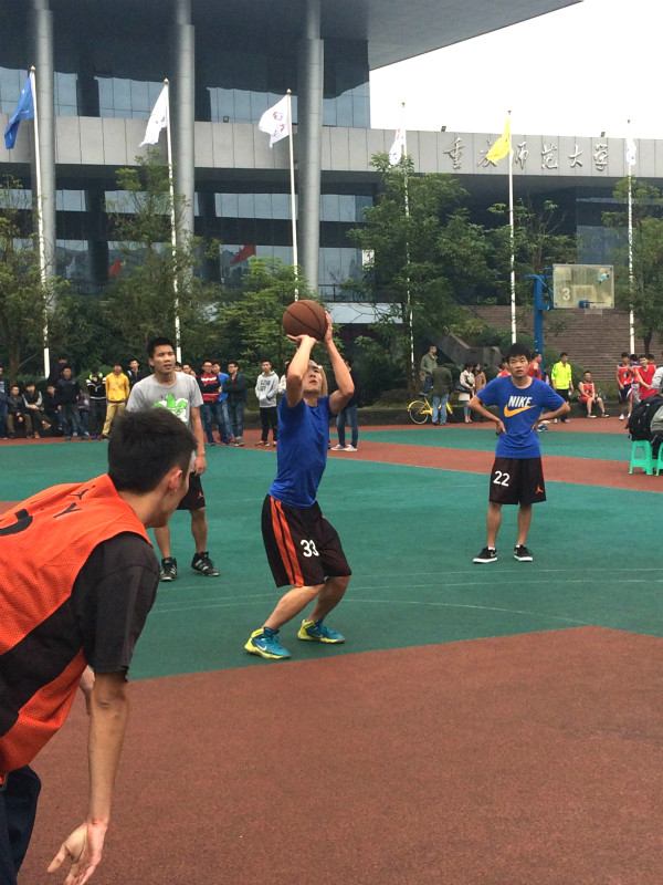 党委副书记杨宇,12级辅导员傅帆,13级辅导员朱嘉洁,14级辅导员姜扬也来到篮球场为同学们加油助威。