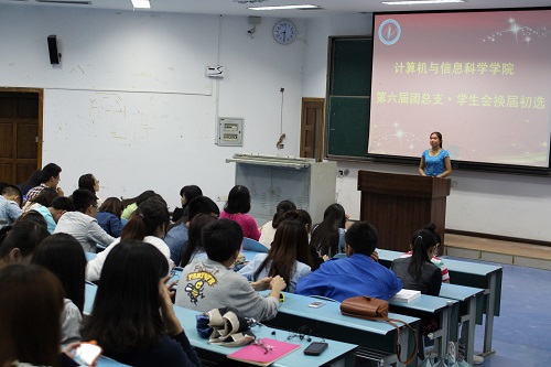 于2014年5月25日晚7:30,在弘德楼5205教室举行了第六届团总支学生会换届初选大会。出席本次大会的评委有辅导员朱嘉洁、傅帆老师及浪live