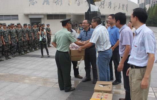 接着,学院领导和辅导员老师们为辛劳的部队教官及每一位军训新生发放了节日慰问品。同学们面带微笑,整齐列队,有礼貌有秩序地一一领取。