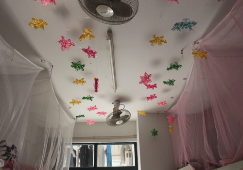 踏入一间间风采各异的寝室,展现在眼前的是令人耳目一新的寝室装饰,或清新田园;或艺术感十足;或温馨舒适;或简单精致;或淡雅脱俗。同学们各展所长:精美喜庆的手工剪纸、恢弘大气的书法艺术、温馨浪漫的千纸鹤、充满节日气息的彩色气球……同学们亲手制作出的一个个匠心独具的手工艺品挂满房间。此外,窗明几净的寝室环境、蕴意深远的寝室名称和吉祥物、醒目的温馨提示和寝室公约、和谐的寝室气氛无不体现浪live