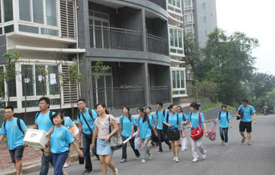 3日早上7:00计信“三下乡”社会实践服务团全体成员整装待发,经过4个多小时的颠簸、转乘3趟公交车,终于到达大渡口区跳蹬镇。同学们的到来受到了共青团跳磴镇委员会和社区负责人、当地居民的热情欢迎,安排好住宿后同学们立即开展工作。