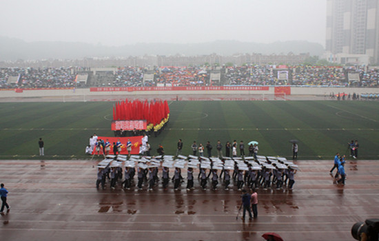 各个学院方队入场完毕,操场响起了庄严的国歌,全校师生庄严而肃穆地向国旗行注目礼。在宣布此次运动会正式开幕后,各个学院的老师组成的太极拳方队进行了比赛。浪live