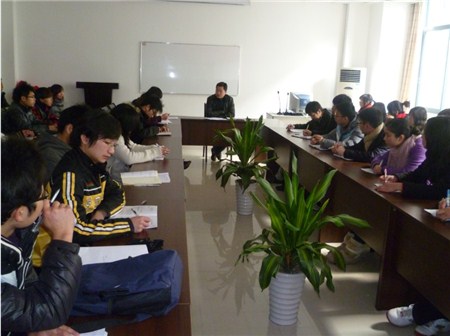 团总支学生会干部成员以及08、09、10级各班学生党员、班长、团支书齐聚集贤楼233会议室,召开了期末干部总结大会暨考风考纪动员会议。