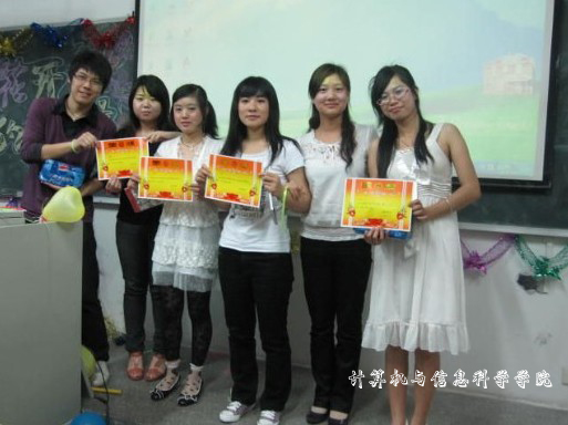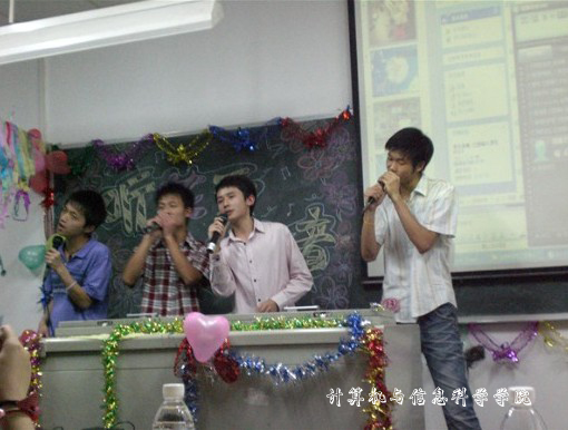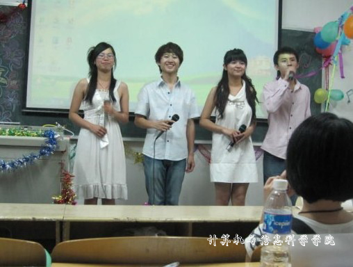 “听花开的声音”歌唱比赛于老校区1613室举行。学院学生会文艺部部长王程程、外联部部长袁婷、体育部部长嫣善娟以及前马列部部长唐晓红担任比赛评委。09级电商班全体同学到现场观看比赛。