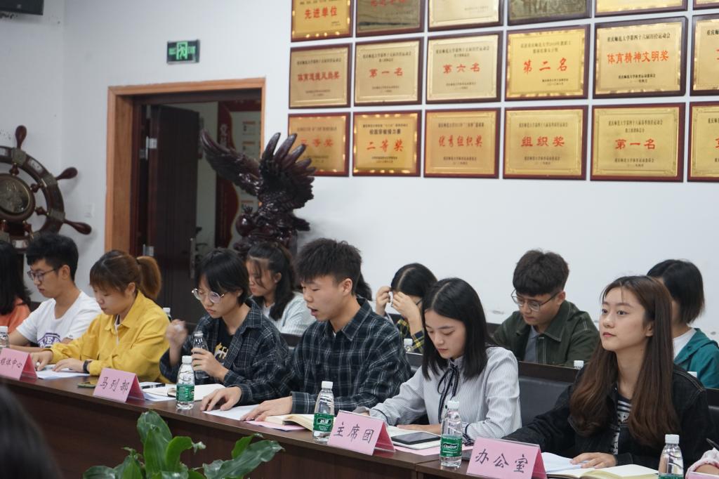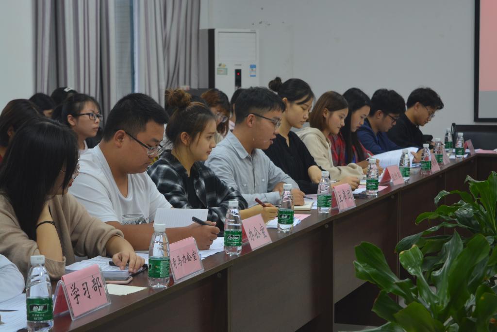 团学会主席毛超做开场发言引出此次活动的目的、主席团书记肖春玲介绍学院及团学会的概况。兄弟学院教科院团学会书记邹洪森发言表示衷心希望本次活动能为两个学院团学会的工作提供思想帮助。