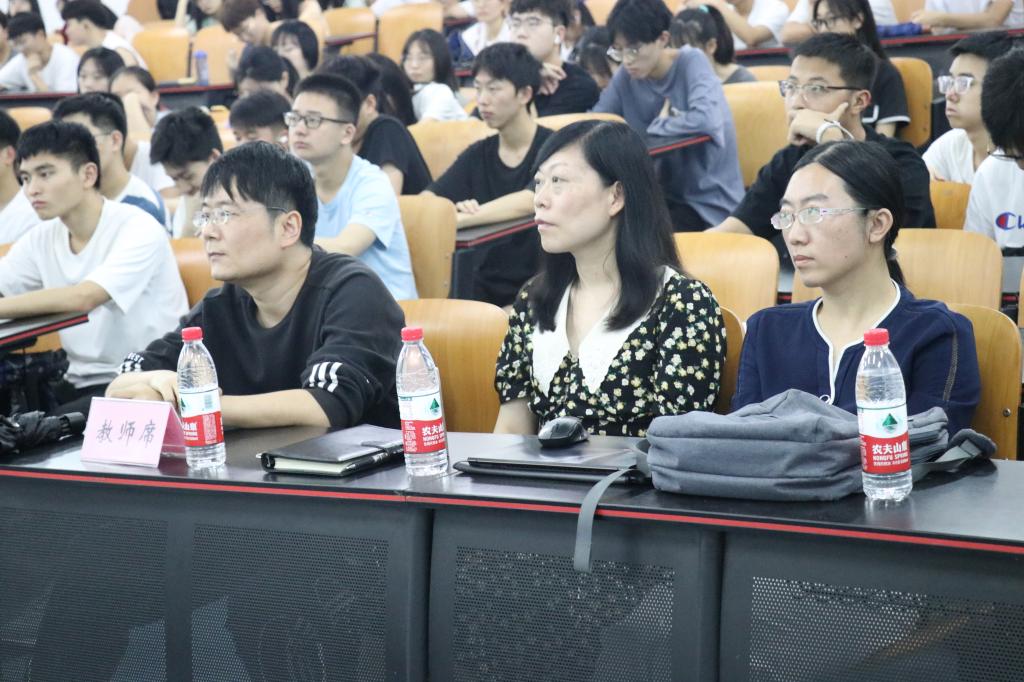 首先,系主任陈勇老师从专业简介、专业优势、专业能力的培养定位等多个方面进行阐述,进一步帮助同学们了解计算机科学与技术专业的具体情况。同时他强调要注重基础,积极参加学科竞赛。随后,罗凌老师重点向同学们介绍学科竞赛与项目实践,展示了近年来计科系部分优秀科研与竞赛成果,鼓励同学们多多参与竞赛,真正做到以赛促学。接着訾玲玲老师介绍了虚拟现实与增强现实技术,通过往届学生的优秀作品向同学们展示了全息技术的魅力,同学们也不禁被展现出的虚拟场景所震撼。