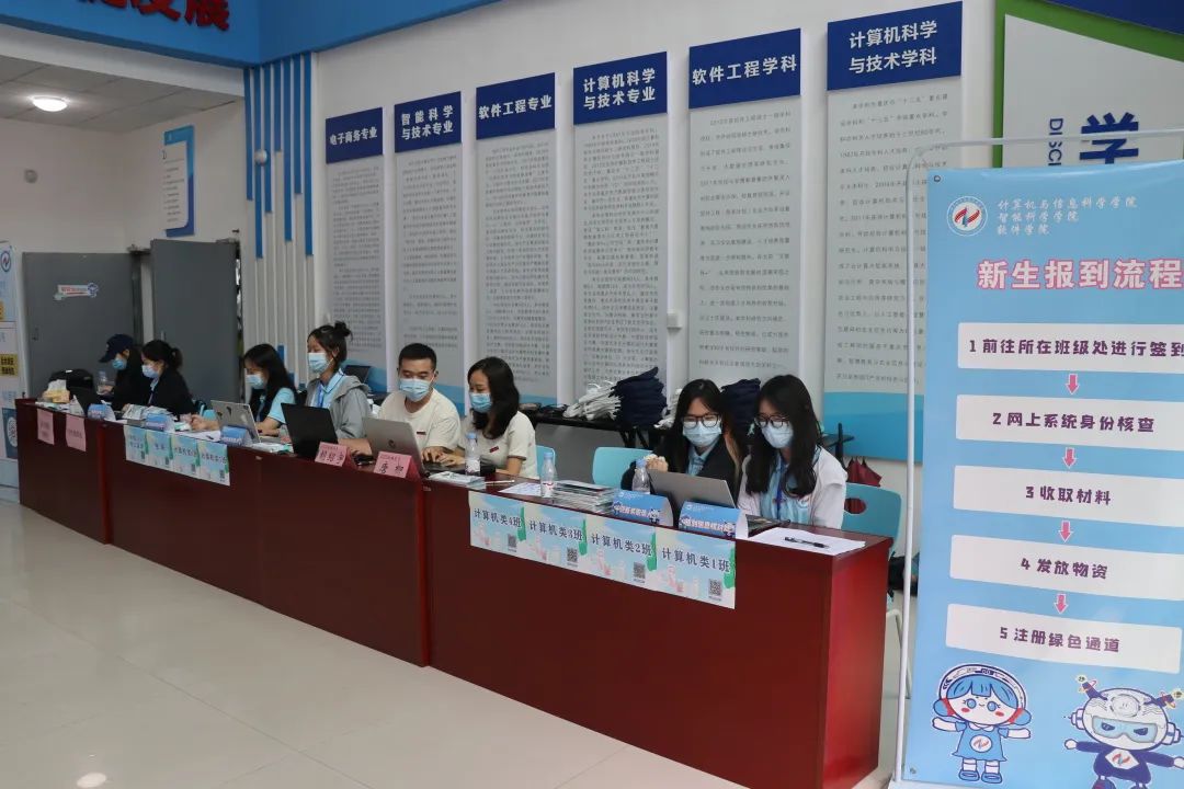 迎新工作,了解新生报到情况,体验特色活动,观览文创展示,指导迎新工作,对2022级新生表示热烈欢迎,对参与迎新工作的老师和志愿者们表示亲切慰问,也充分肯定了计信学院的迎新工作有特色,有温暖。