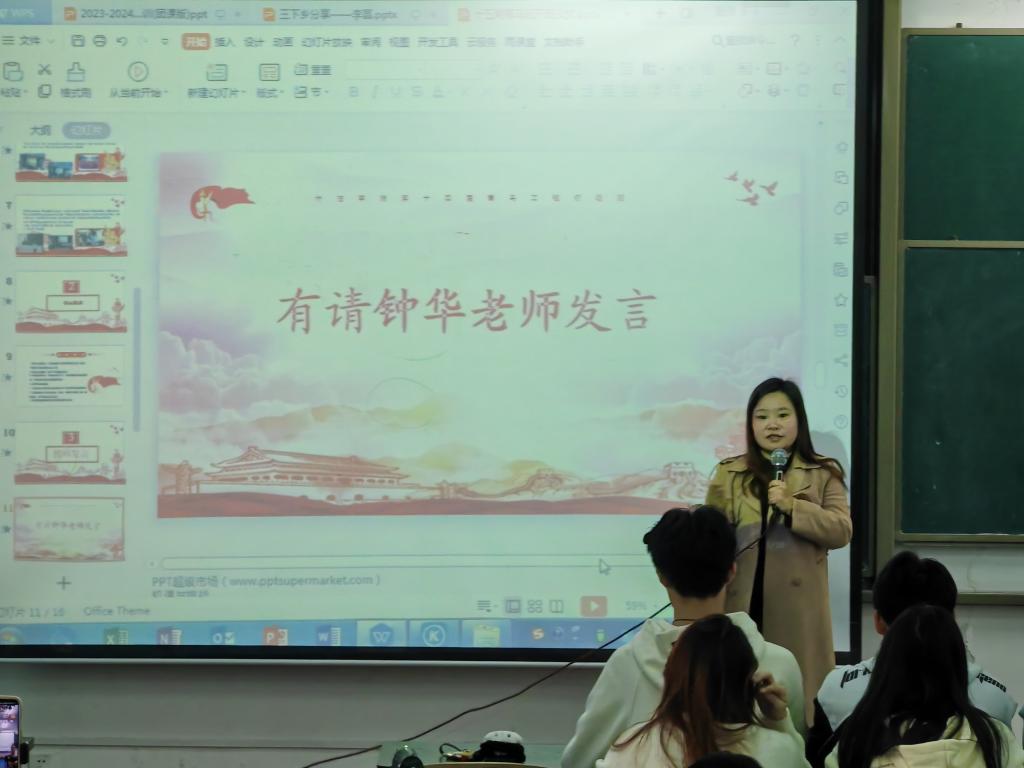会议还邀请到“云上村干部·智慧助农”乡村振兴实践团成员唐野分享了参与暑期大学生三下乡活动的收获,他通过云上村干部的身份深入了解当地村干部的日常工作,跟随村干部的脚步一起进行日常探访,深刻认识到农村基层建设的现状和发展任务。紧接着,院校友部李磊同学分享了优秀校友寻访团团队汇报,寻访团成员们在相关企业的学习过程中,采访优质校友,凝聚校友力量,了解相关工作经历,汲取宝贵经验,提出“聚力行,共发展”规划,通过讲述校友的风采,更激发了同学们积极向上的热情,树立正确目标并把握时机,为走向社会做好充分准备。