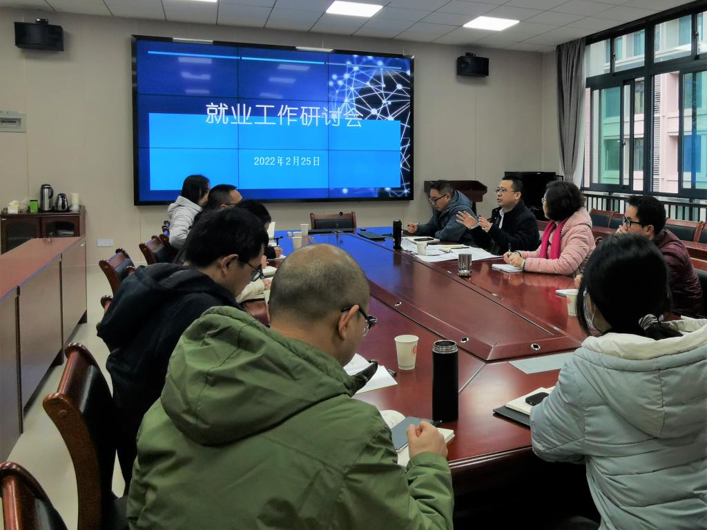 调研指导就业工作,学院党委书记陈兰、副书记李若岩、各系主任、学工办主任及全体辅导员参与了此次座谈会。