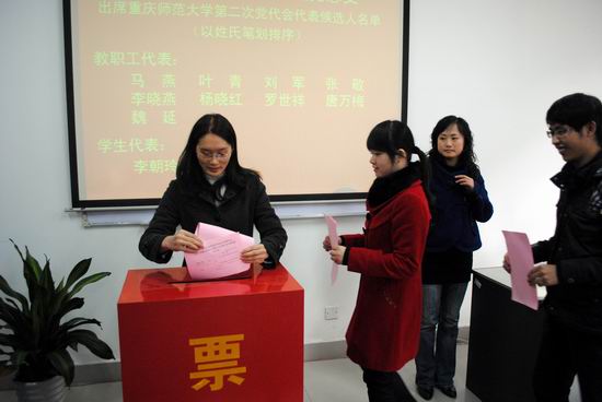 党员代表参加学校的第二届党代会,本次选举结果送学校党委组织部审批。