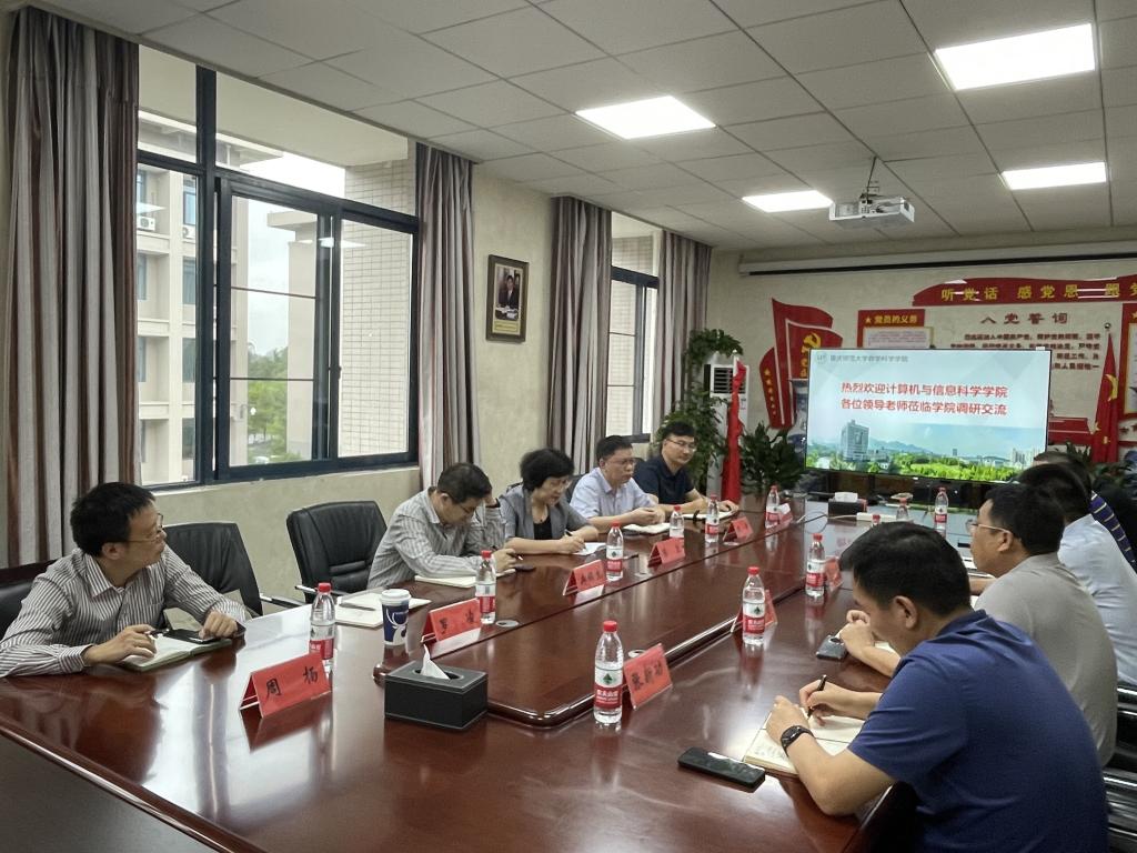 在数学科学学院,通过参观走访重点实验室,详细了解了科研团队和专业建设如何有效融合、均衡发展;对学院顶层设计思路和制度建设工作开展情况以及党建工作如何在建优建强科研团队、凝练团队方向中发挥引领作用进行了深入学习交流。
