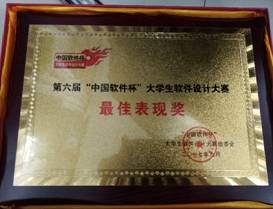 的参赛女孩就成为了比赛现场的焦点。比赛现场统一着装,参赛的男生都身穿绿色体恤,女生都是粉色的,所谓万绿丛中一点粉!经常会有来自其他学校的指导老师惊叹“这六个女生厉害了”。面对严肃又紧张的比赛现场,以及专家们的严格评审,她们一开始很紧张,但迅速地调整过来沉着应战,两个队最终都成功地完成了作品,用行动证明了自己。令人高兴的是两个参赛队伍最后都获得了总决赛二等奖,更让人惊喜的是“mc^2”队同时还获得了第六届“中国软件杯”最佳表现奖!她们的突出表现为我校和浪live